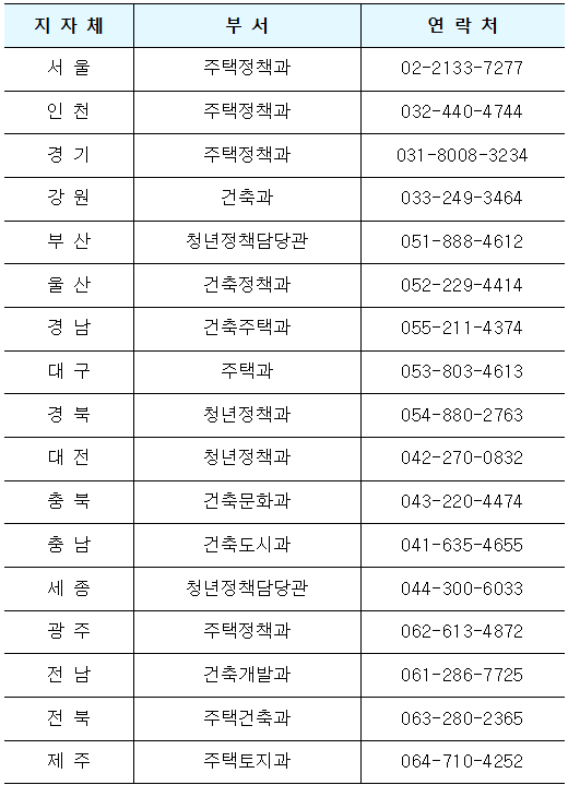기타 궁금한 사항은 국토교통부 콜센터 또는 각 지자체 담당 부서로 문의하면 되겠습니다.